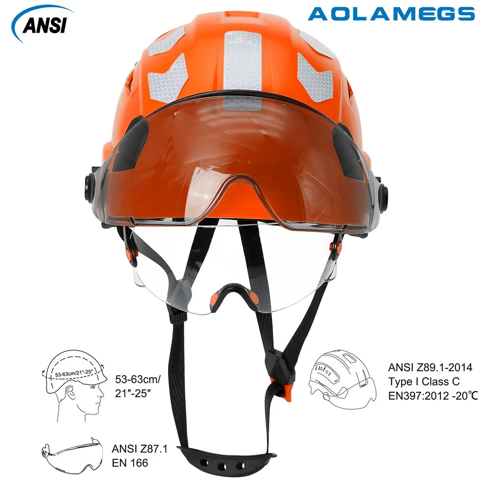 CE Construction Safety Helmet with Visor Built In Goggle Reflective Stickers for Engineer ABS ANSI Industrial Work Security Hat