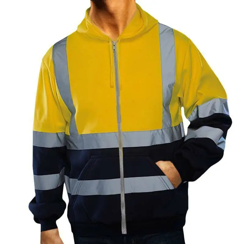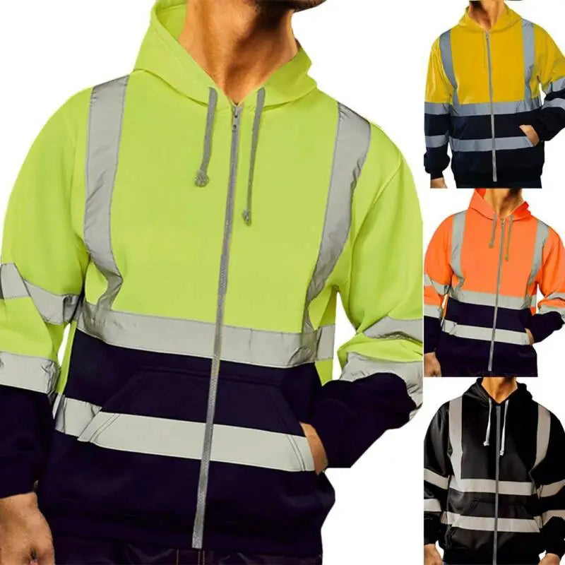 Men Reflective Strip Sanitation Overalls Fleece Hooded Jacket for Cold-Proof Outdoor Sweater Work Safety Coat Outdoor